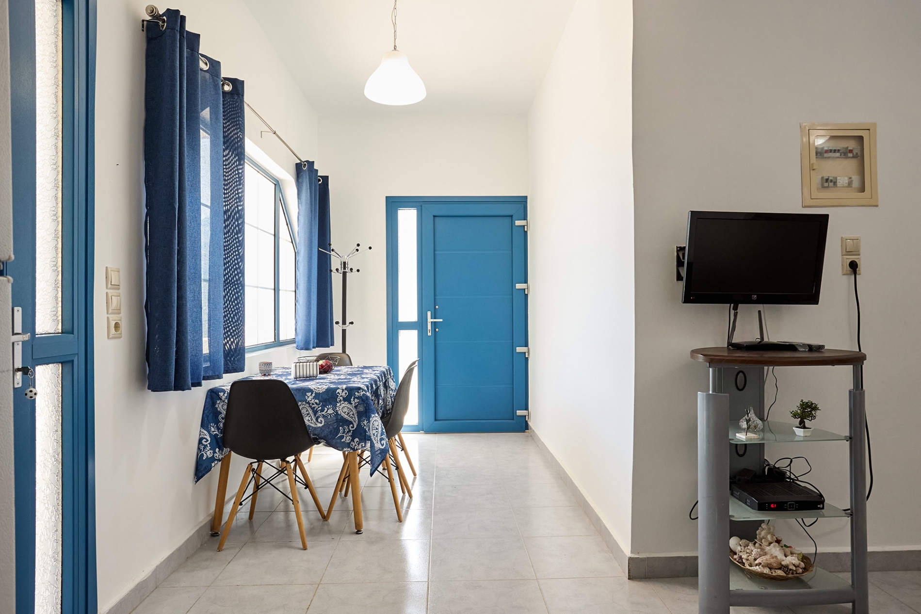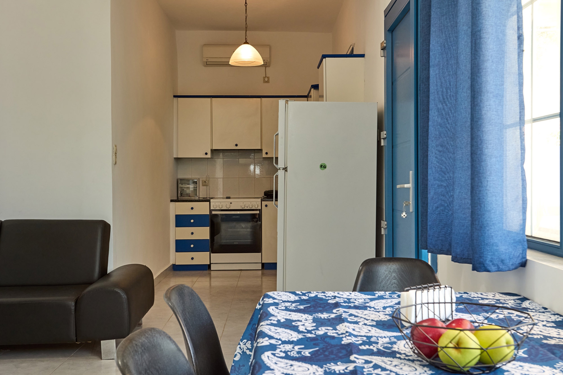 Η πλήρως εξοπλισμένη κουζίνα και η τραπεζαρία δημιουργούν έναν ευχάριστο χώρο για γεύματα ή στιγμές χαλάρωσης, ενώ οι επιπλέον παροχές περιλαμβάνουν τηλεόραση, τρεις μονάδες κλιματισμού και πλυντήριο ρούχων για μια άνετη και λειτουργική εμπειρία.